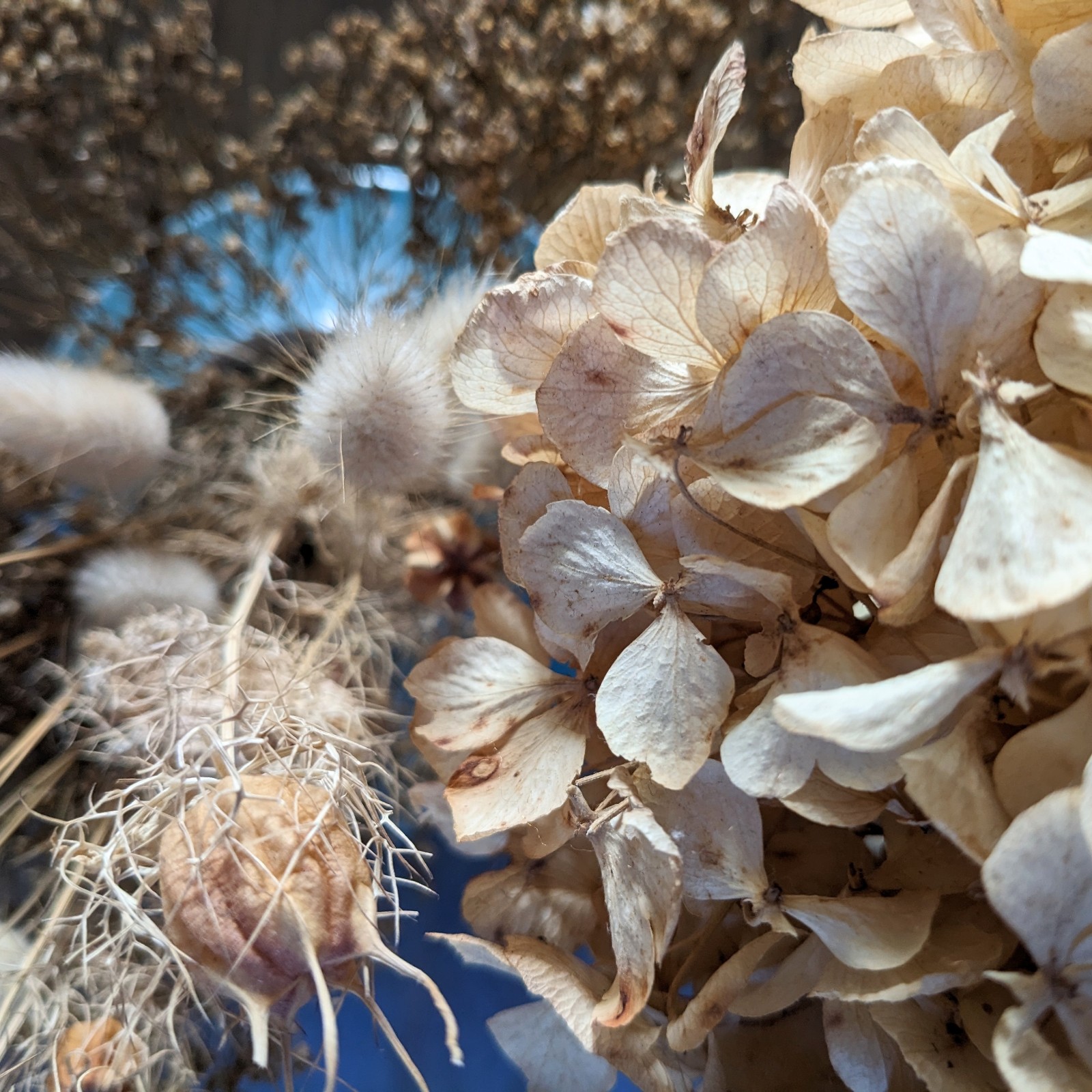 J’aime marier le bois avec différentes matières recyclées, pour y apporter une vraie singularité. Je chine des chutes de tissus, des pots de peintures (pas aussi anciennes que sur la photo je vous rassure), etc. . Je sèche mes bouquets, et parfois la nature m’offre de magnifiques plumes pour créer des décorations uniques.